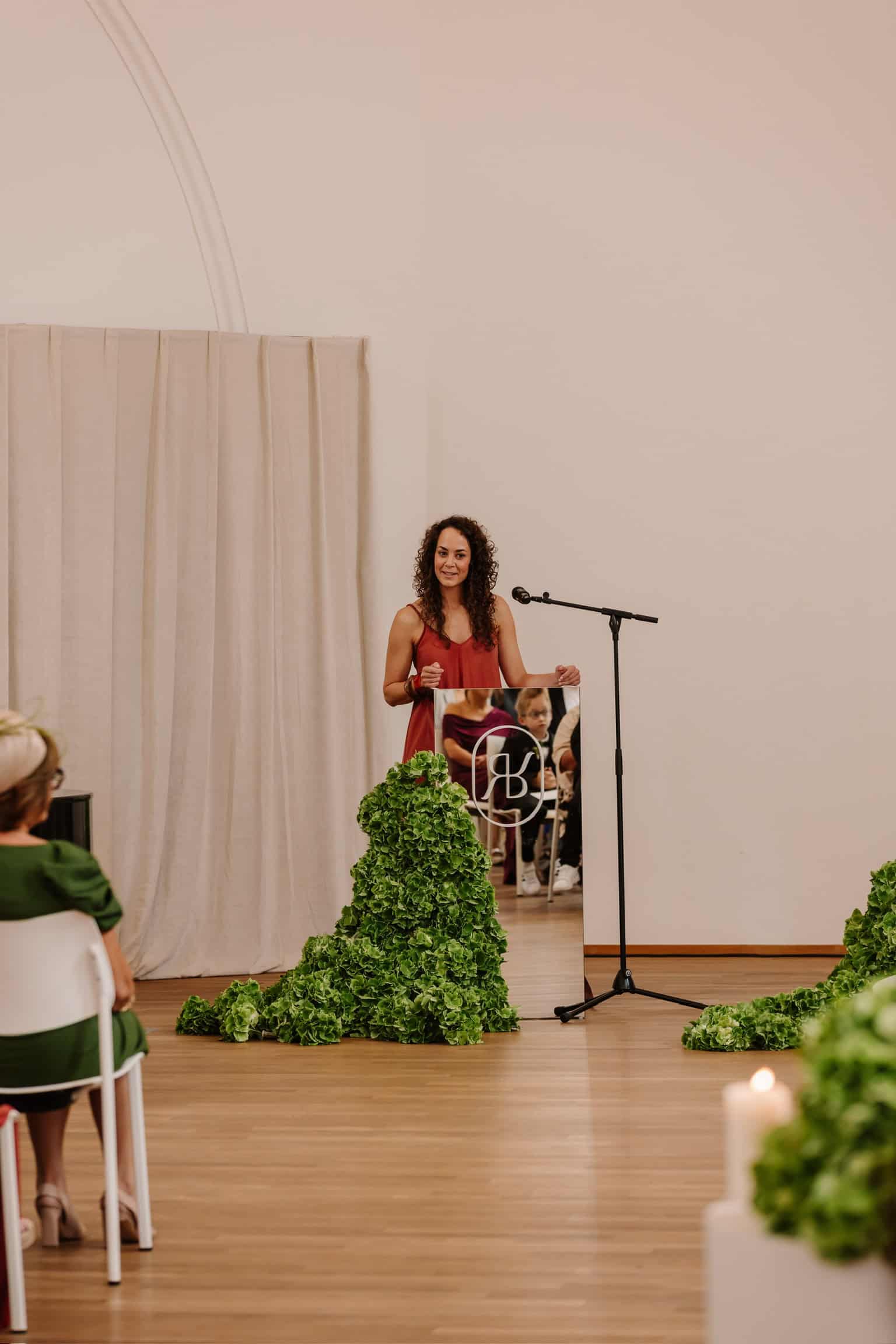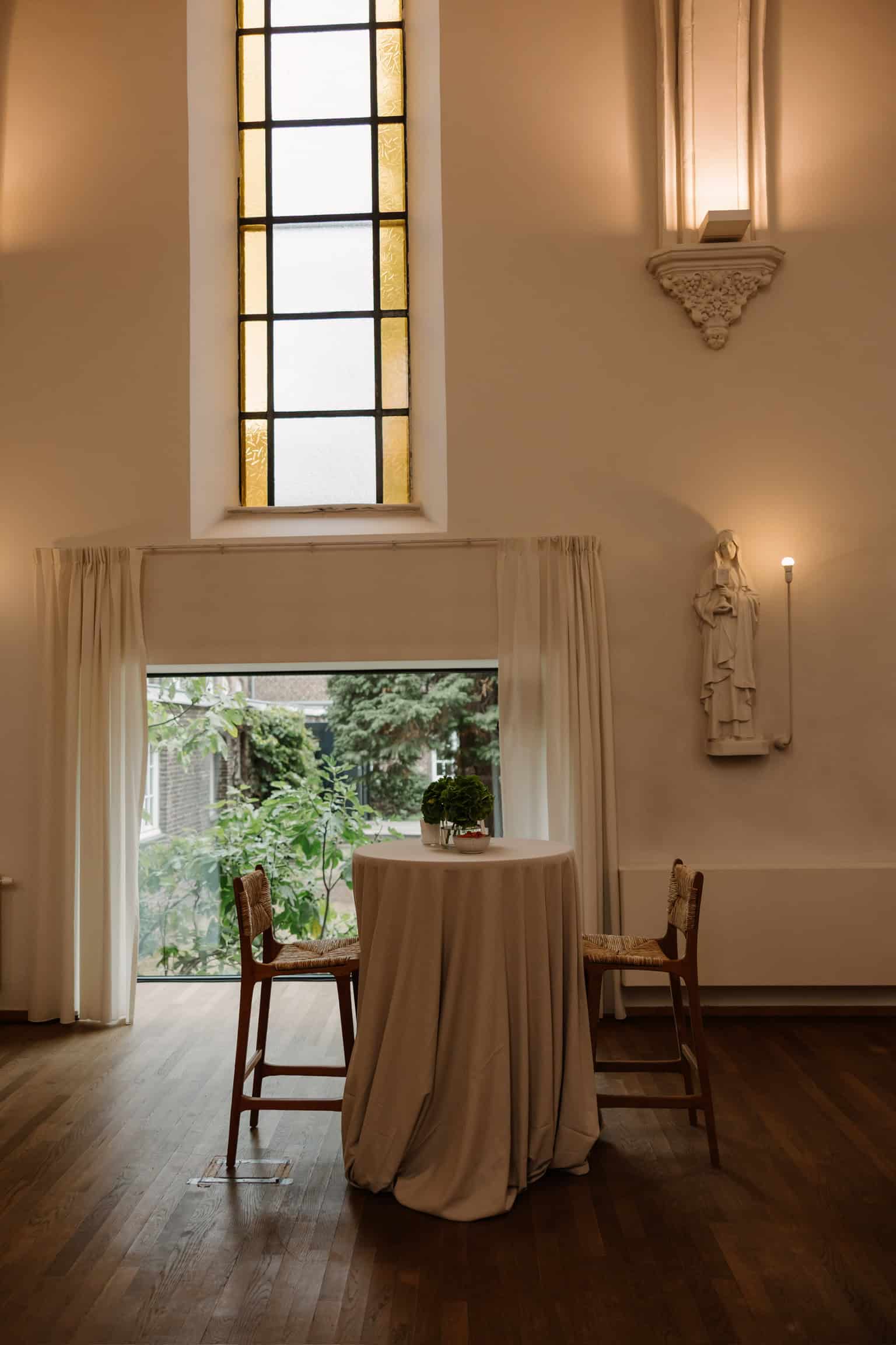 De ceremonie vond plaats in een intieme setting, waar onze passie voor vormgeving en sfeer volledig tot zijn recht kwam. Zo kreeg de iconische Edra-sofa een prominente plaats in de kapel – een krachtig en stijlvol statement. Daarnaast stond er een verfijnd beeld van Gardeco, dat niet alleen artistieke waarde had, maar ook een diepere symboliek uitstraalde.
